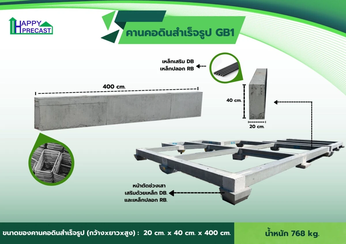 คานคอดินสำเร็จรูป GB1 ขนาด 0.20×0.40×4 เมตร