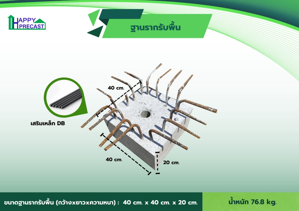 HP-FS1 ฐานรากสำเร็จรูปสำหรับรับพื้น ขนาด 0.40 x 0.40 x 0.20 เมตร